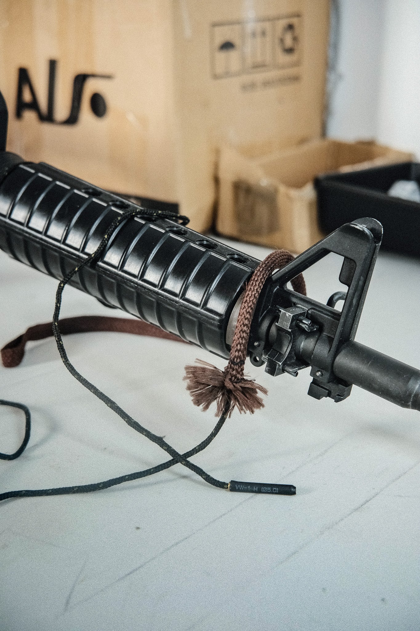 - once brush is against start of inner barrel, pull on the weighted end and in a single fluid movement pull the brush through and out the muzzle
